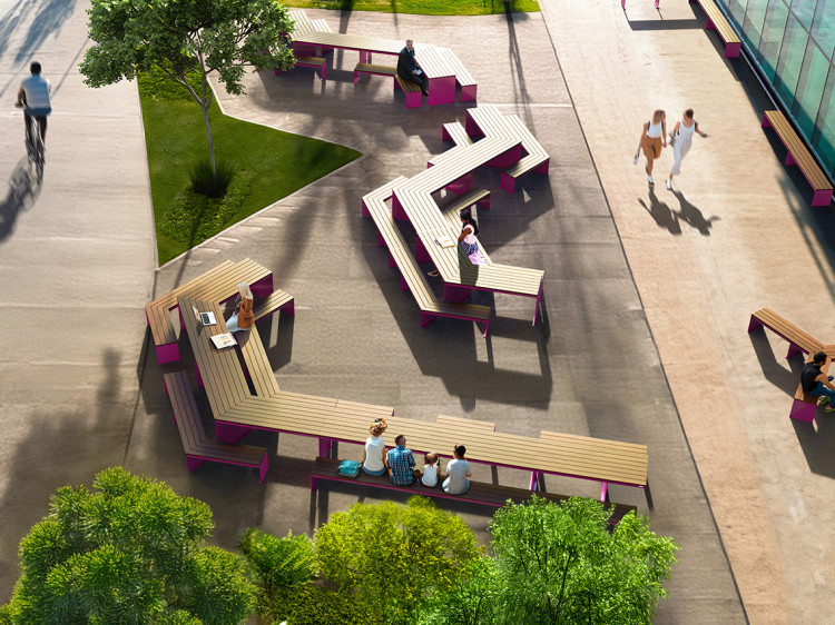 Outdoor collaborative space or pedestrian street furniture