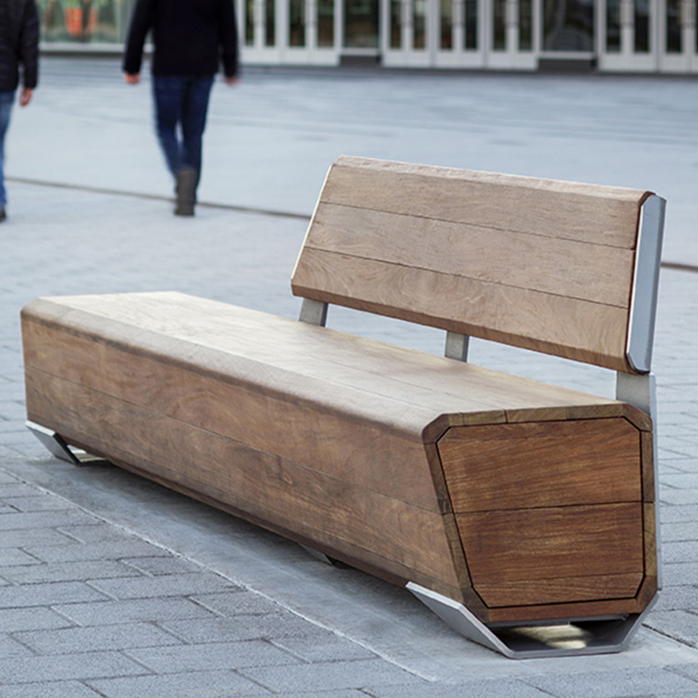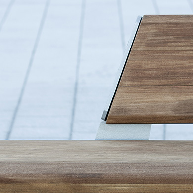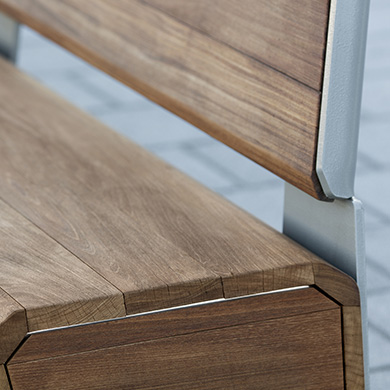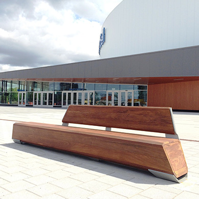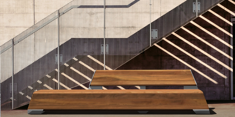 CEPPO reinterprets the traditional wood bench with dynamic lines and an combination of materials. Warm yet distinguished, simple yet prestigious in Ipe wood.