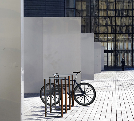 The MODULO bike rack, designed by Morelli and part of the MORELLI FURNISHING’s MODULO collection, displays clean and refined lines. It is made of aluminum and ipe wood, making it extremely low-maintenance and resistant to Quebec’s climate extremes.