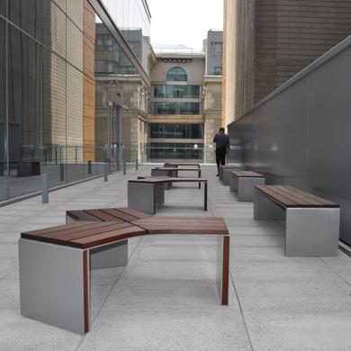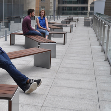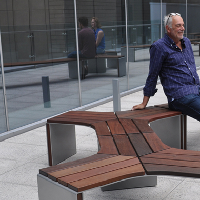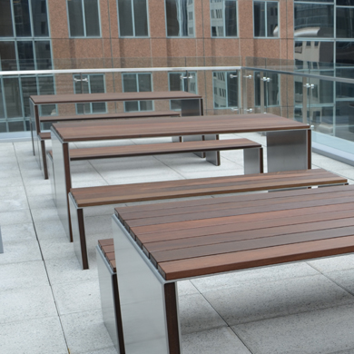 La corbeille MODULO, dessinée par Morelli s’intègre parfaitement au mobilier de la collection. Fait de bois d’ipé et d’aluminium, elle résiste au dur climat du Québec et demande très peu d’entretien.
