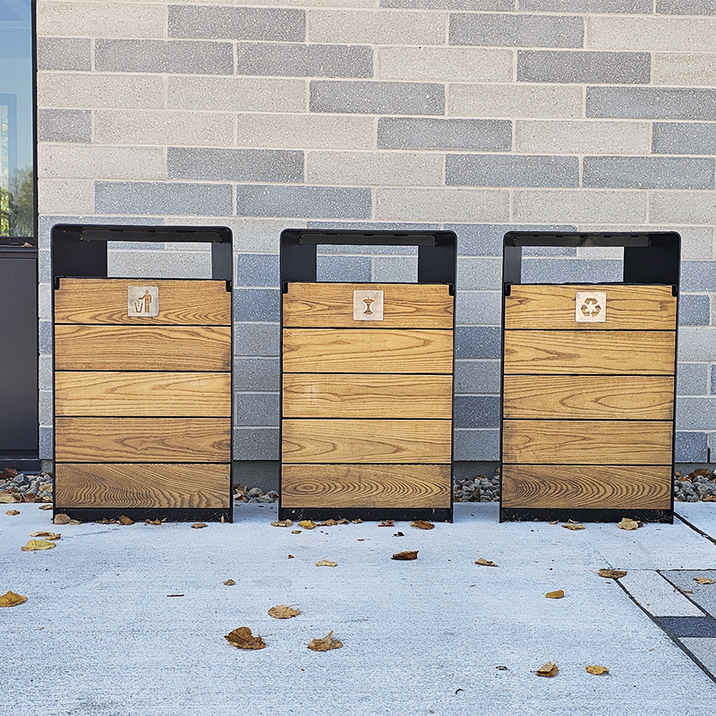 The Piazza litter receptacle, designed by Morelli and part of the ORA FURNISHING™’s Piazza collection, displays clean and refined lines. It is made of aluminum and ipe wood, making it extremely low-maintenance and resistant to Quebec’s climate extremes.