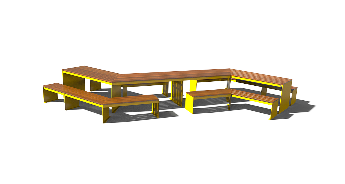 The RECTO modular picnic table from our INFINITO collection lends unique appeal to any landscape design requiring a linear configuration of modular furniture with angled edges. Personalize your space by combining several modules to form an open or closed hexagon, a half-circle or a Z shape. The collection includes straight and angled modules. Your creativity is the only limit! The RECTO modular table will enliven and enhance your desired landscape look.