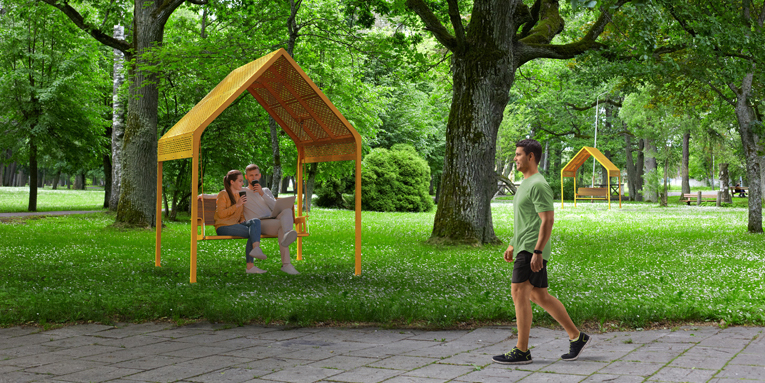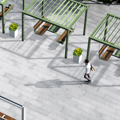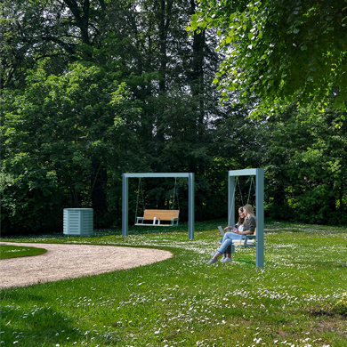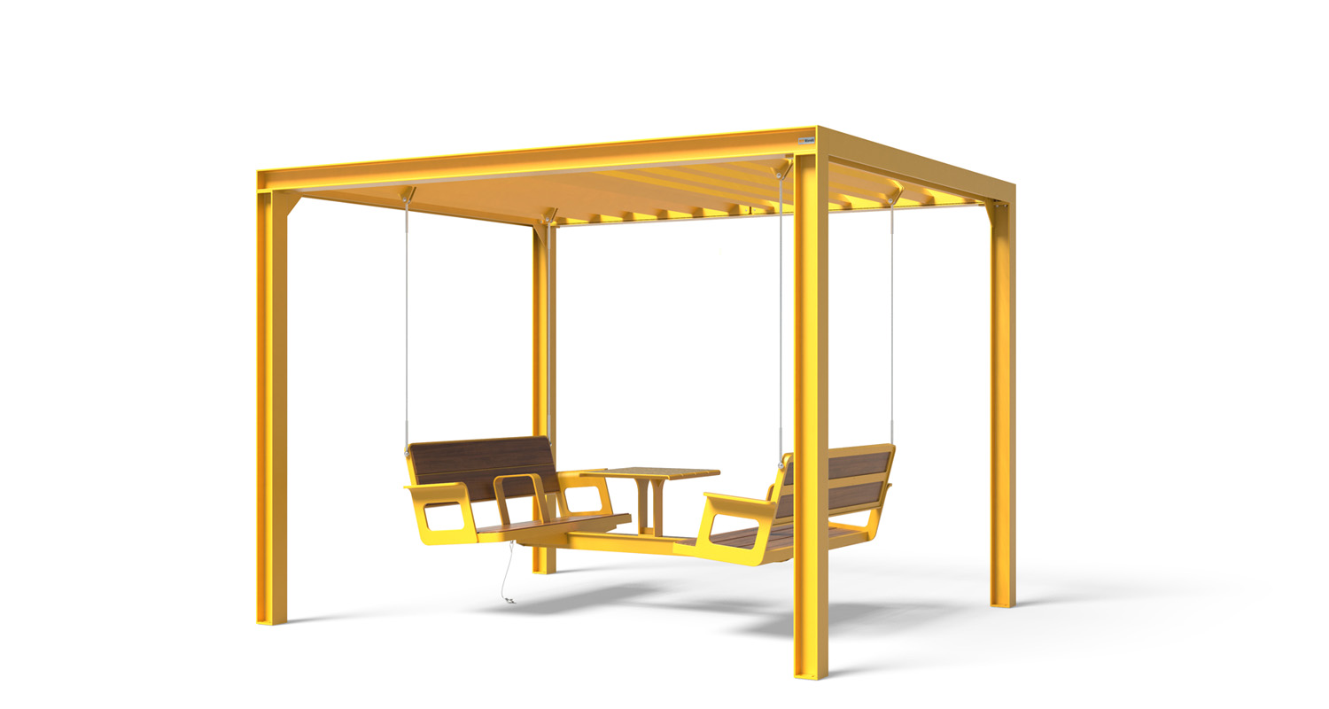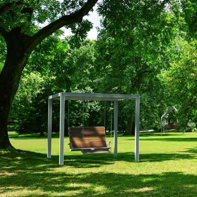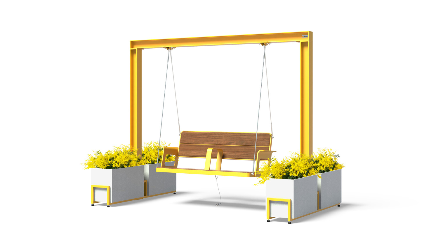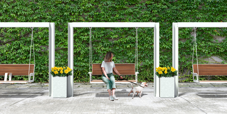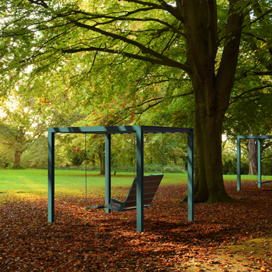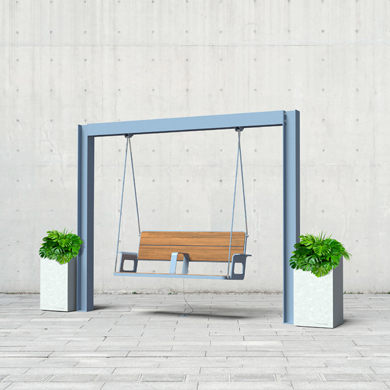 The SWING Collection is our fresh take on the classic urban swing, with a unique, modern and thoughtful design. The suspended structures give people a whole new way to rest and interact with their surroundings as they enjoy the moment, alone or in the company of others.