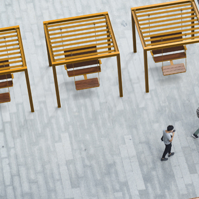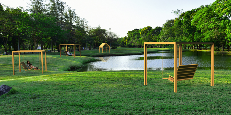 The Béatitude Urban Swing is urban furniture that enhances both landscape and urban developments.
