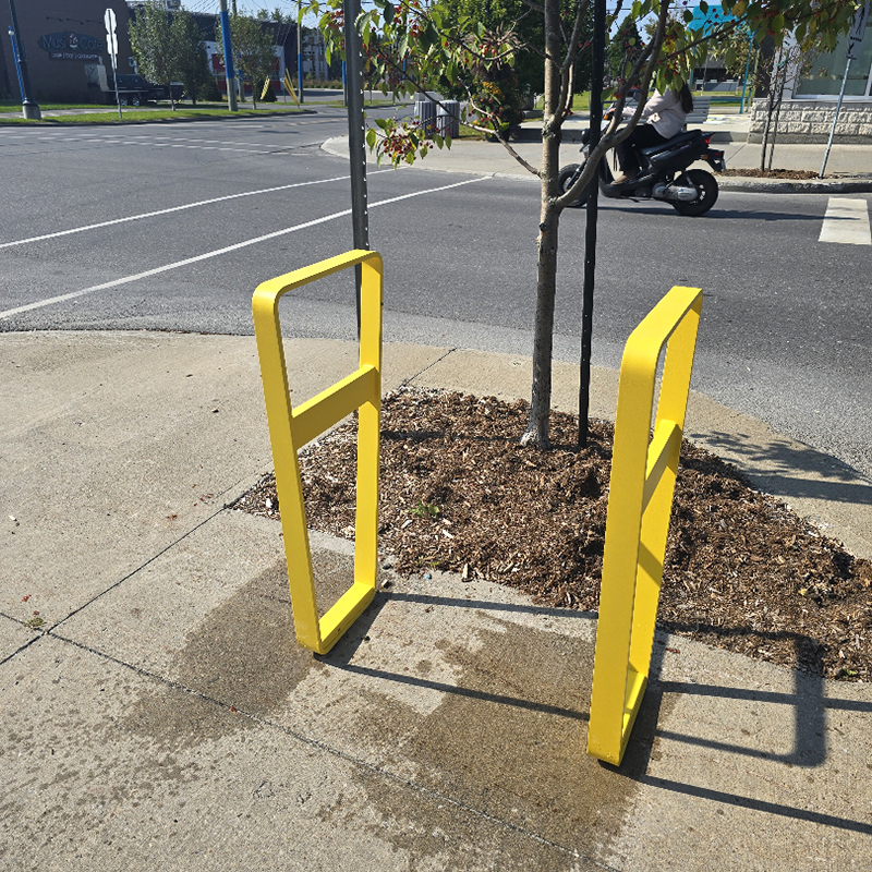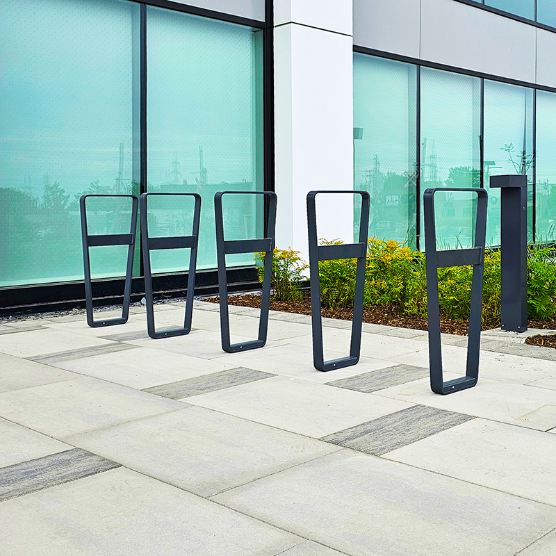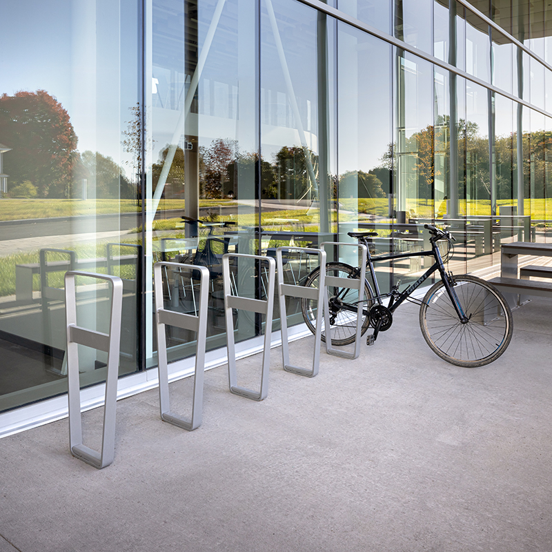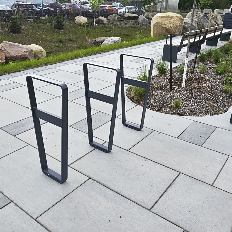 The Urbano Collection’s bike rack leaves sidewalks open because it can be anchored to your light poles. If space is not an issue, it’s also available as a stand-alone without pole-mounting. And this bike rack stands up to whatever weather Québec dishes out, due to its robust aluminum structure painted with an industrial-quality baked-powder coating. The base hides the floor anchoring system and resists vandalism.